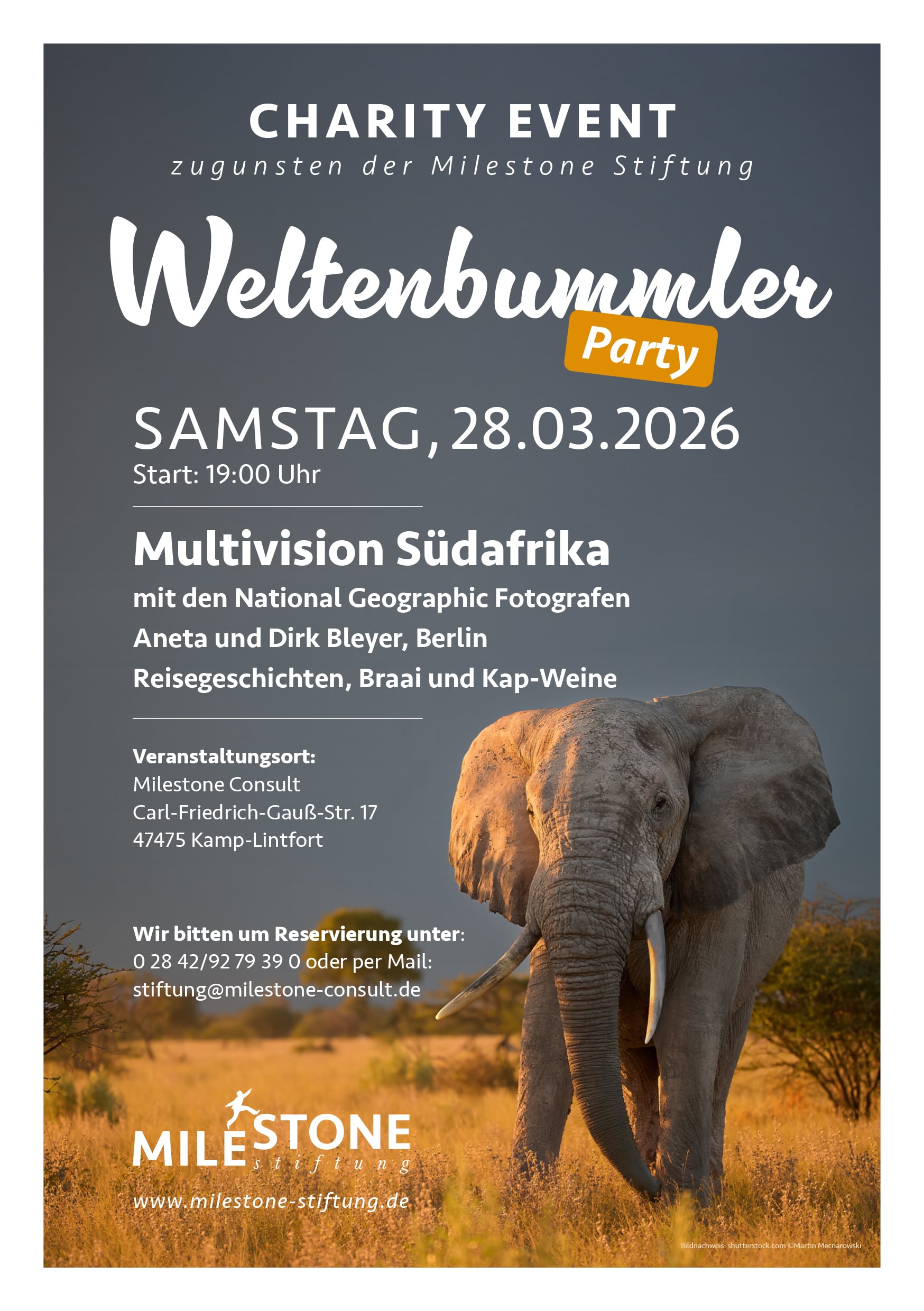 Wir informieren Sie gerne über unsere kommenden Veranstaltungen. Hinterlassen Sie uns dafür einfach Ihre Kontaktdaten wie Name und Mailadresse: stiftung@milestone-consult.de